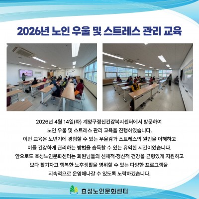 2026년 노인 우울 및 스트레스 관리 교육
