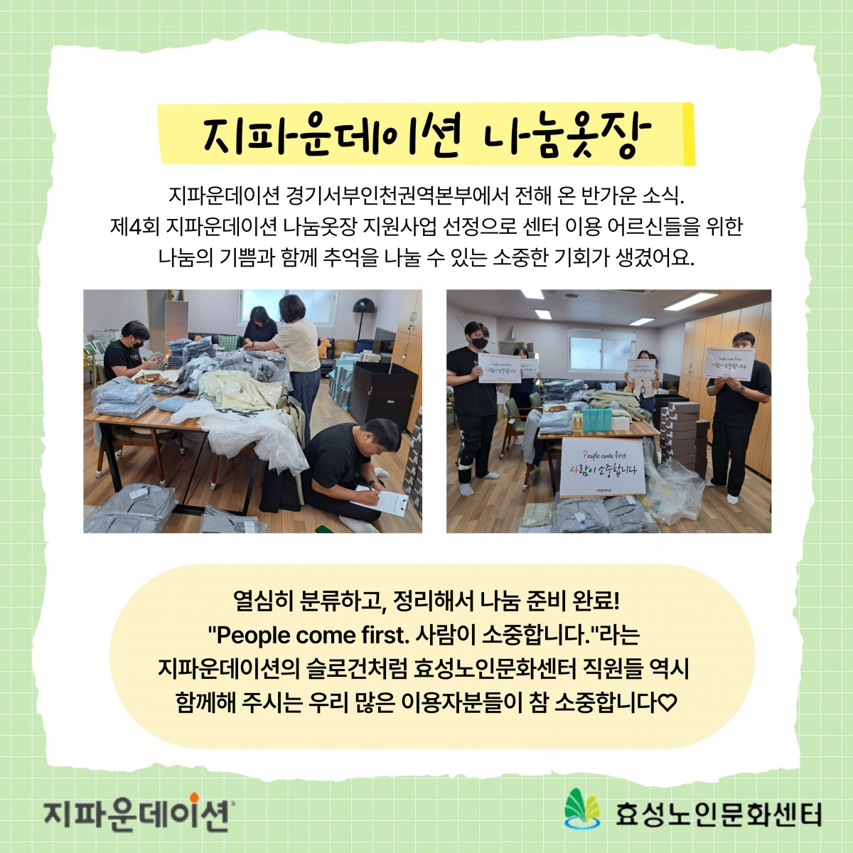 제4회 지파운데이션 나눔옷장 지원사업 페이지 정보 작성자 관리자 댓글 0건 조회 237회 작성일 25-07-31 09:25 본문 . 목록 이전글2025년 2분기 신규이용자 교육 25.08.05 다음글KJ실업 모자 후원 25.07.24 댓글목록 댓글목록 등록된 댓글이 없습니다.